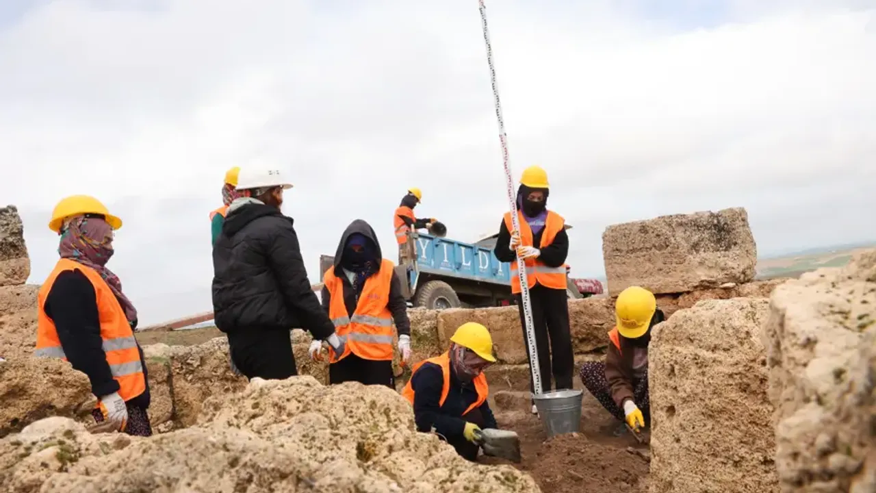 Kazı alanında 35 kadın, proje kapsamında tarihi yapıdaki eserleri gün yüzüne çıkarmak için büyük bir özveriyle çalışıyor.