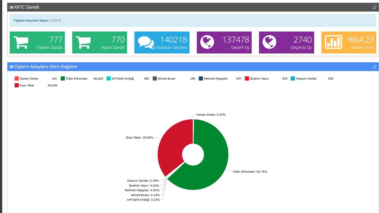 Yüksek Seçim Kurulu 777 sandıktan 771 sandığın kesin olmayan sonuçlarını açıkladı.