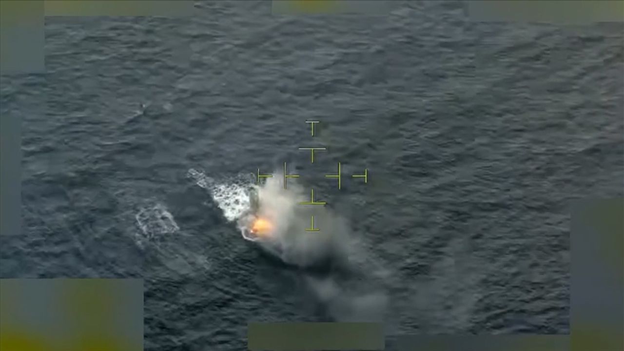 Bu arada, operasyona dair yayınlanan görüntüde, teknenin vurulmasının ardından alev aldığı görülüyor.