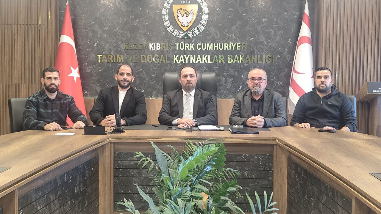 Arıcılar Birliği Yönetim Kurulu Başkanı Serhan Kara, Yönetim Kurulu üyeleri ve Kuzey Kıbrıs Arıcılar Kooperatifi Başkanı Hasan Kozok, Tarım ve Doğal Kaynaklar Bakanı Hüseyin Çavuş’u ziyaret etti.