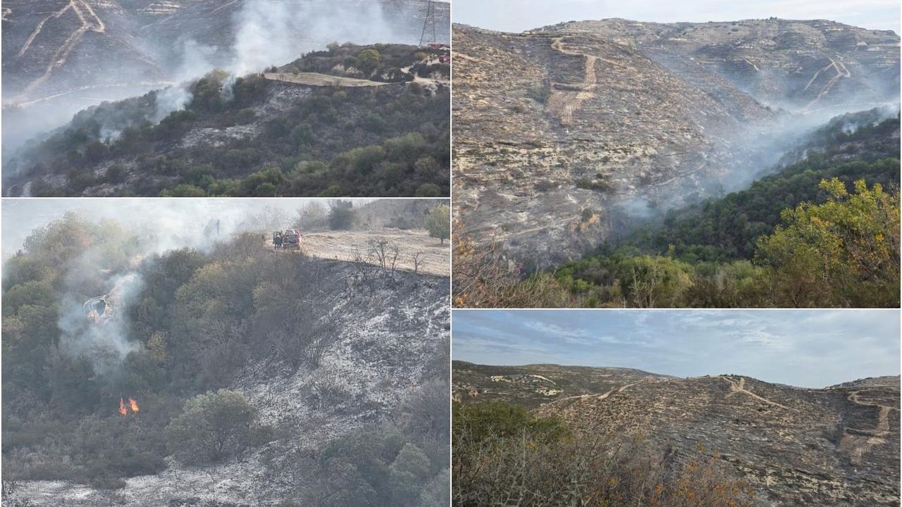 Limasol ve Baf kazaları arsında öğle saatlerinde çıkan ve sürekli yön değiştiren şiddetli rüzgar nedeniyle büyüyen yangın bu sabah itibarıyla kontrol altına alınabildi.