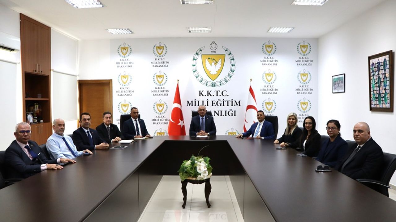 Milli Eğitim Bakanı Nazım Çavuşoğlu, Kıbrıs Üniversiteler Birliği Başkanı ve Arkın Yaratıcı Sanatlar Üniversitesi (ARUCAD) Rektörü Prof. Dr. Asım Vehbi ile beraberindeki yönetim kurulu üyelerini kabul etti.