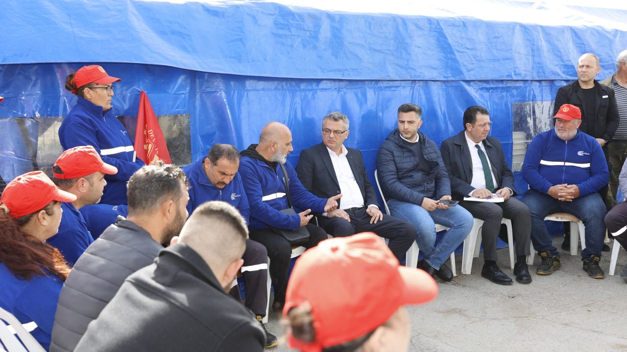 Cumhurbaşkanlığından verilen bilgiye göre, Cumhurbaşkanı Erhürman, çalışanların başlattığı süresiz grev dolayısıyla sendika yetkililerinden ve çalışanlardan mevcut durum hakkında bilgi aldı, yaşanan süreçle ilgili görüş ve talepleri dinledi.