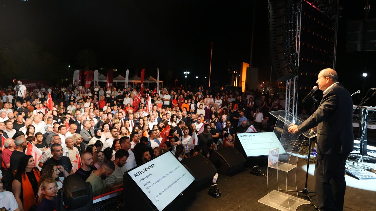 CTP Adayı Tufan Erhürman’ın ‘ben çözeceğim’ diyerek, Halkı kandırmaya çalıştığını belirten Tatar, “Çözse senin yanında çalıştığın, seninle aynı çizgideki ağabeylerin çözerdi. Talat çözerdi, Akıncı çözerdi. Çözebildiler mi? Hayır çözemediler. Kandırılan, sürekli oyalanan hep bizler olduk. Kıbrıs Türk halkı oldu” dedi.
