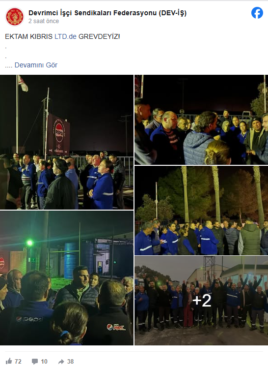 Devrimci İşçi Sendikaları Federasyonu’na (DEV-İŞ) bağlı Emek-İş Sendikası, Ektam Kıbrıs LTD. çalışanlarının uzun süredir iş güvencesinden yoksun bırakılması ve en temel yasal haklardan faydalandırılmaması nedeniyle şirkette 24 saatlik grev başlatıldığını duyurdu.