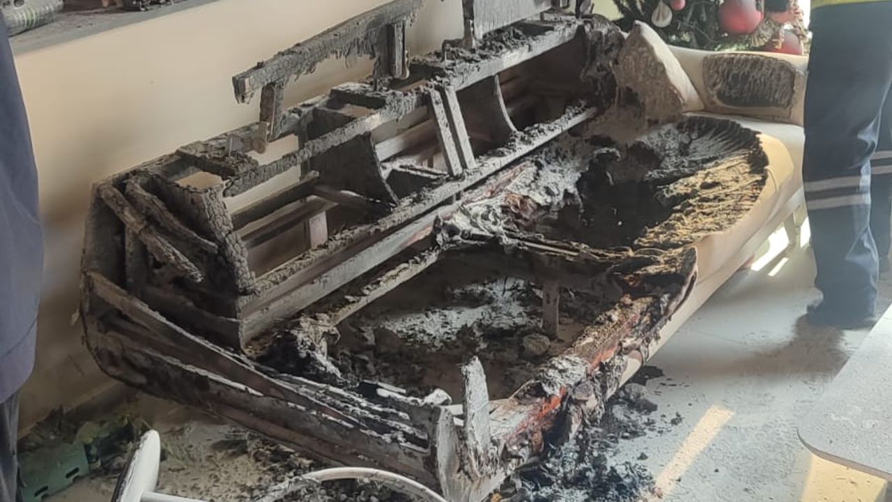 Gönyeli’de Uslu Sokak Batıkent Villalarında bir şahsa ait evde elektrikli sobanın koltuğu tutuşturması sonucu yangın çıktı.
