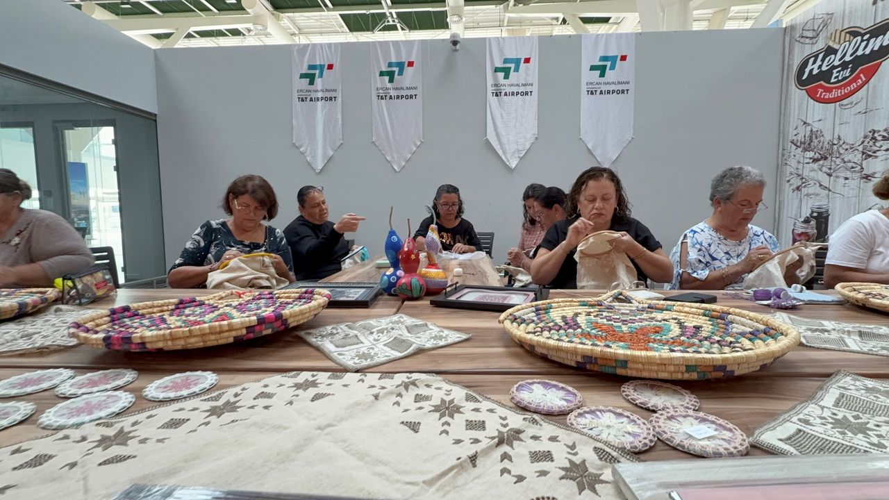 Kıbrıs kültürünü tanıtmak amacıyla Ercan Havalimanı'nda düzenlenen etkinlikte Akıncılar Köy Kadın Kursu öğretmen ve öğrencilerinden oluşan bir ekip Kıbrıs şarkıları eşliğinde sele, sepet, ipek kozası ve Lefkara işleri işledi.