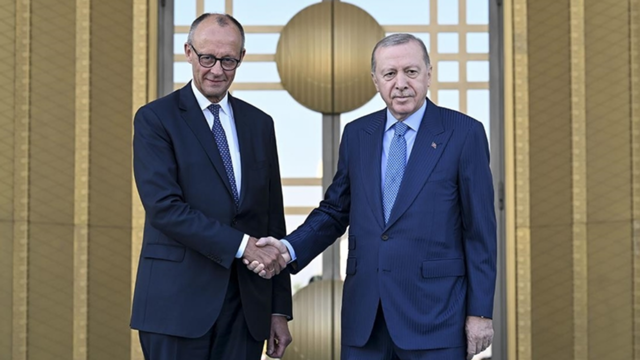 Şansölye sıfatıyla Türkiye'ye ilk ziyaretini gerçekleştiren Merz ve heyetini Türkiye'de ağırlamaktan büyük bir memnuniyet duyduğunu belirten Erdoğan, bugün yaptıkları görüşmelerde, iki yakın NATO müttefiki olarak ortak çıkarları zemininde ikili ilişkileri ve uluslararası meseleleri ele aldıklarını ifade etti.