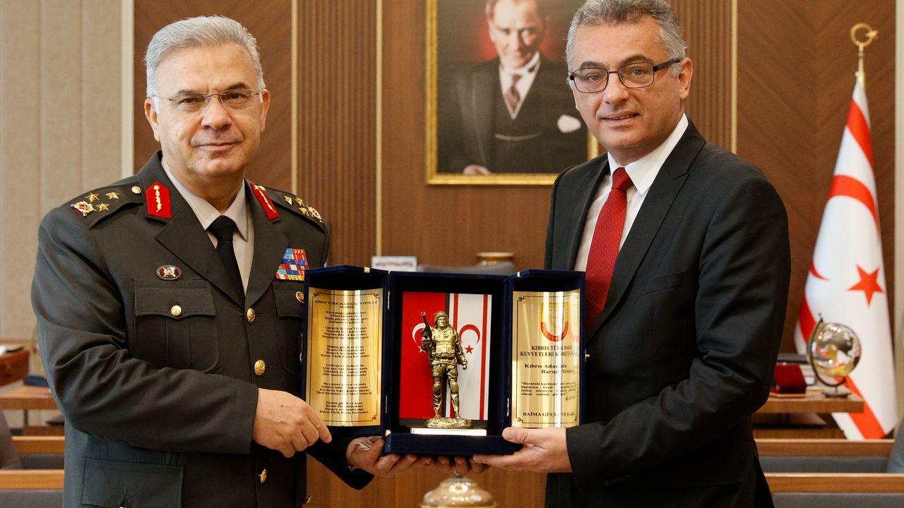 Cumhurbaşkanı Tufan Erhürman, Kıbrıs Türk Barış Kuvvetleri Komutanı Korgeneral Sebahattin Kılınç'ı kabul etti.
