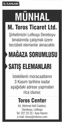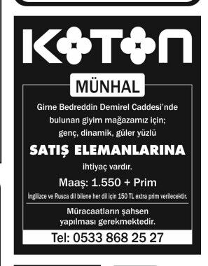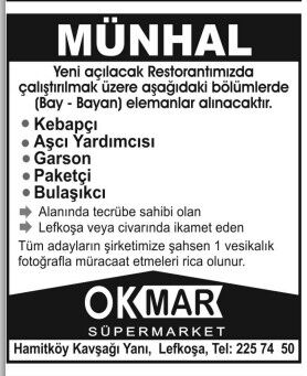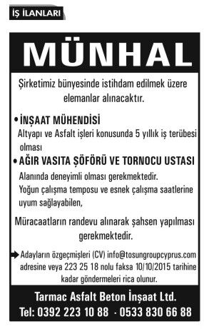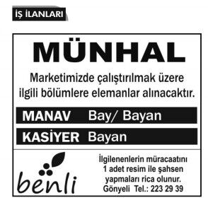 İŞ İLANLARI - MÜNHALLER