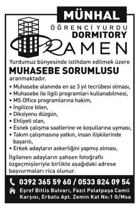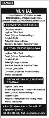 İŞ İLANLARI - MÜNHALLER