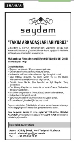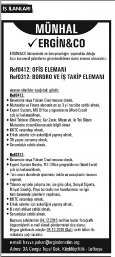 08 ARALIK SALI 2015 PERSONEL ARAYANLAR MÜNHAL İLANLARI