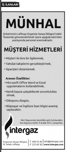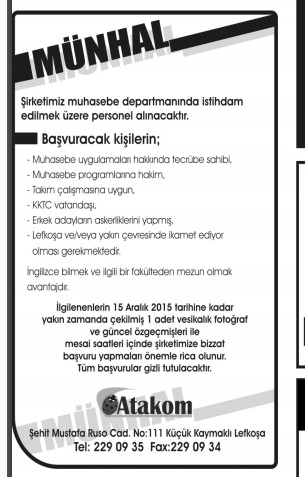 11 ARALIK CUMA 2015 PERSONEL ARAYANLAR MÜNHAL İLANLARI1
