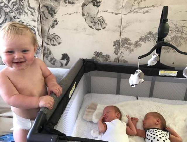 Şimdi biri 1 yaşında diğerleri 8 haftalık bebekleri için günde 20, haftada 140 bez değiştirdiklerini söylüyorlar. Eliza için en zoru emzirmek. İkizleri emzirirken küçük Charlie ile biraz sorun yaşıyor.