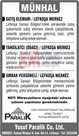İŞ İLANLARI - MÜNHALLER