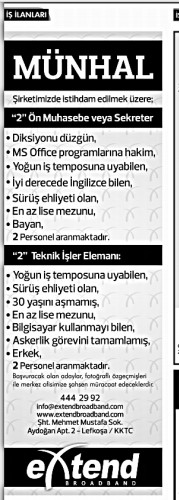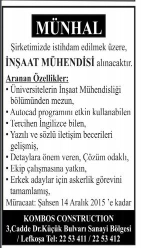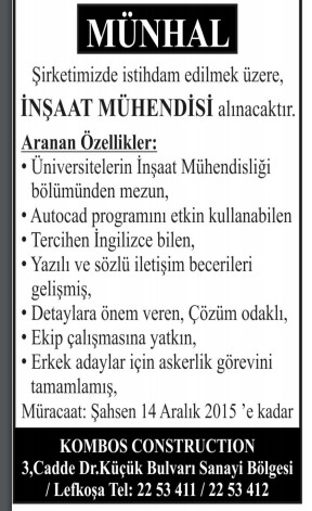 14 ARALIK 2015 PAZARTESİ PERSONEL ARAYANLAR MÜNHAL İLANLARI