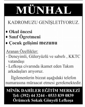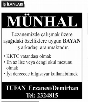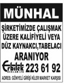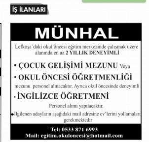 İŞ İLANLARI - MÜNHALLER
