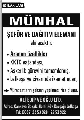 İŞ İLANLARI - MÜNHALLER