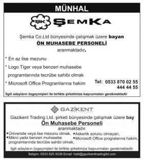 19 KASIM 2015 PERŞEMBE PERSONEL ARAYANLAR MÜNHAL İLANLARI