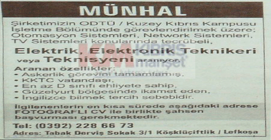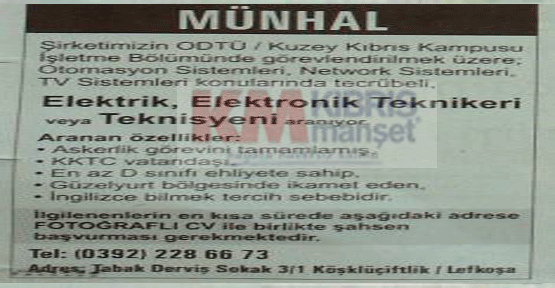 İŞ İLANLARI - MÜNHALLER