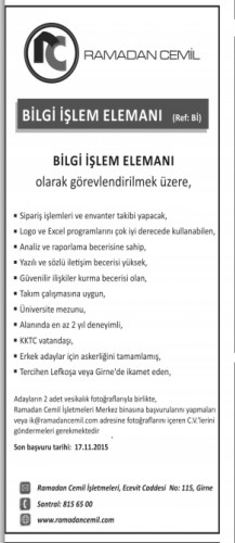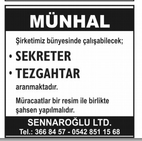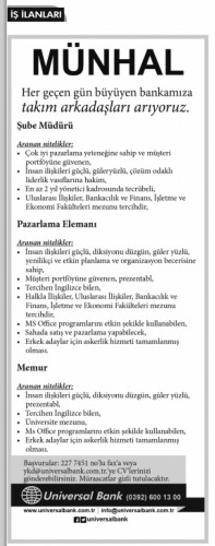 26 KASIM 2015 PERŞEMBE PERSONEL ARAYANLAR MÜNHAL İLANLARI