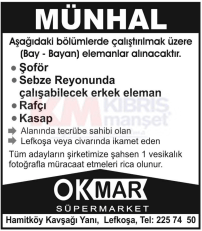 26 MAYIS SALI PERSONEL ARAYANLAR, MÜNHAL İLANLARI