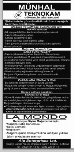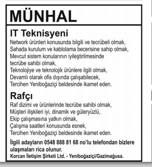 İŞ İLANLARI - MÜNHALLER