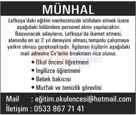 28 MAYIS PERŞEMBE PERSONEL ARAYANLAR VE MÜNHAL İLANLARI