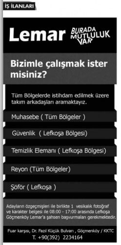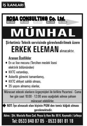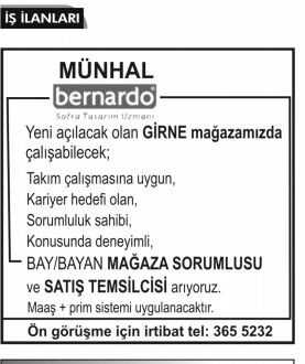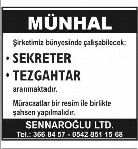 İŞ İLANLARI - MÜNHALLER