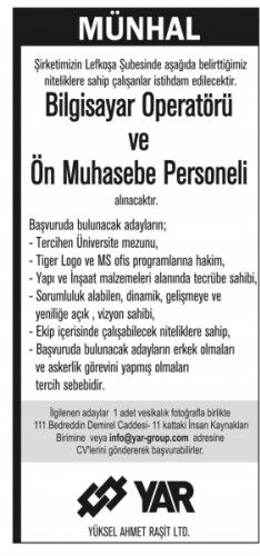 31 EKİM 2015 CUMARTESİ PERSONEL ARAYANLAR MÜNHAL İLANLARI