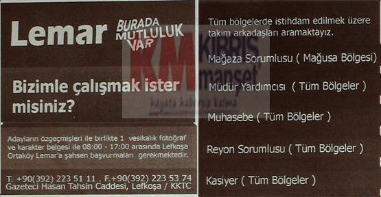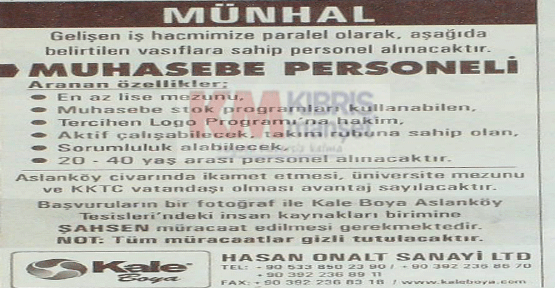 5 MAYIS SALI PERSONEL ARAYANLAR, MÜNHAL İLANLARI