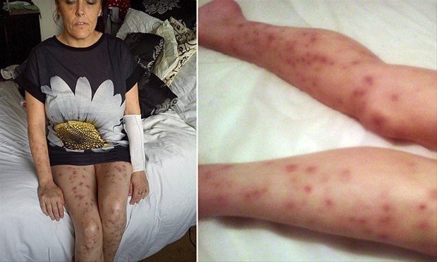 Isırıktan sonra tüm vücudunda lezyonlar oluştu.