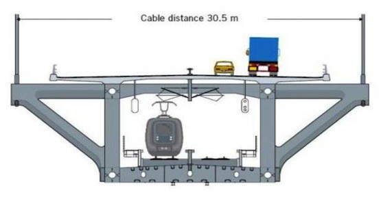 Köprünün denizden yüksekliği 57 metredir ancak köprü boğazın yarısında bitip deniz altında tünelle birleşir.