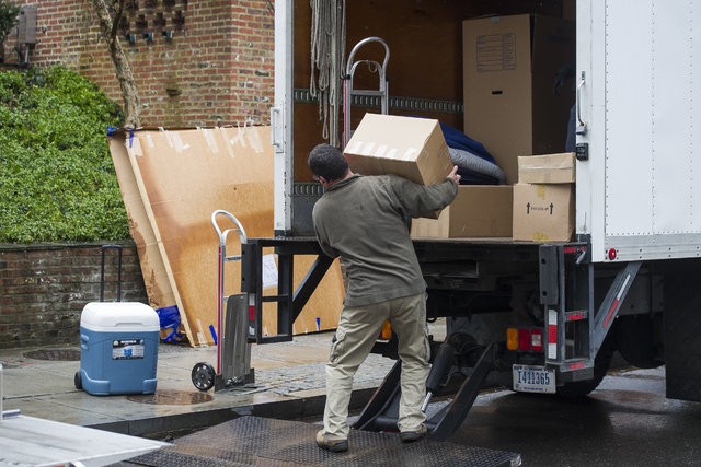 İşçiler Obama ailesinin eşyalarını yeni evlerine taşırken
