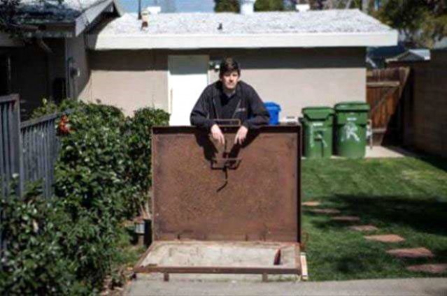 Bahçelerinde gizli bir kıyamet sığınağı bulan çift heyecanla sığınağın içini incelemeye başladı.