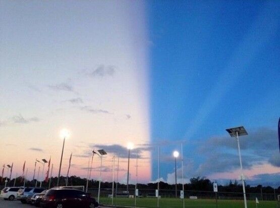 Gökyüzü ikiye bölünmüş gibi. Bir taraf gündüz diğer taraf ise gece. Pasifik Okyanusu'ndaki Guam Adaları'n çekilen fotoğarfı görenler photoshop olduğunu düşünebilir ancak tamamen gerçek bir kare.. . Sadece doğanın muhteşem bir gösterisi...