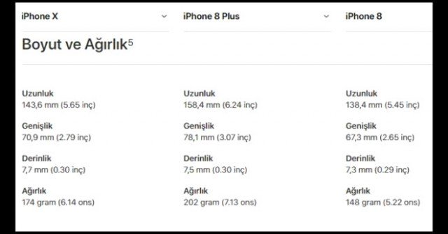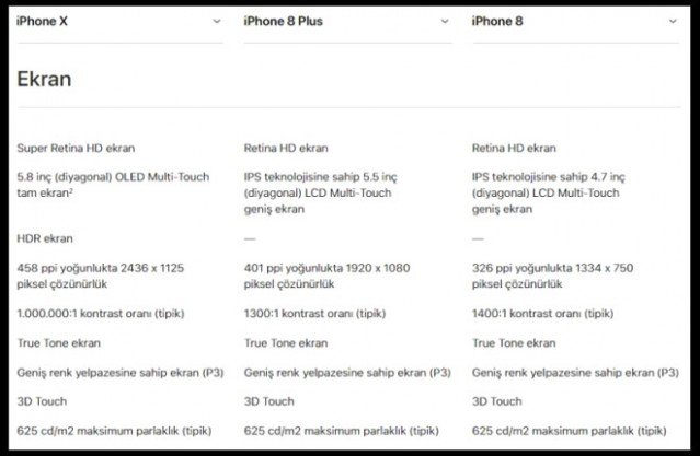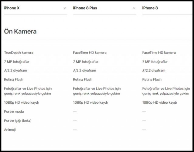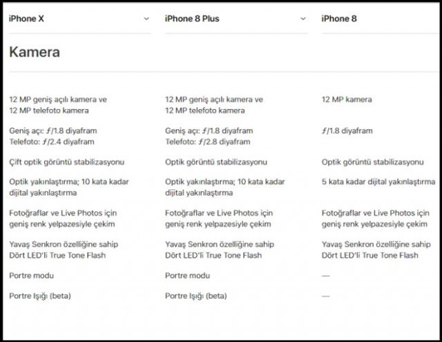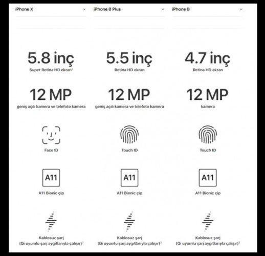 Apple'ın yeni tanıttığı iPhone ürünleri olan iPhone X, iPhone 8, iPhone 8 Plus modellerinin teknik özellikleri ve karşılaştırması bu galeride...