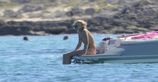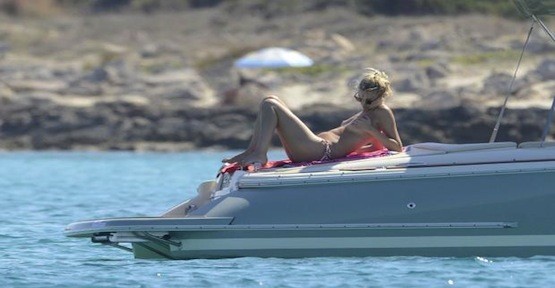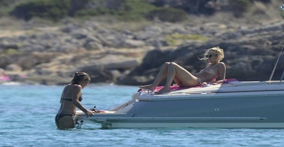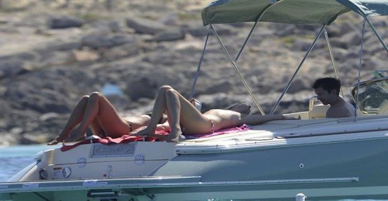 Wellesley bir ara bikinisinin üst parçasını çıkarıp teknenin ön tarafına uzanarak güneşlendi.