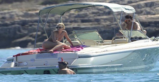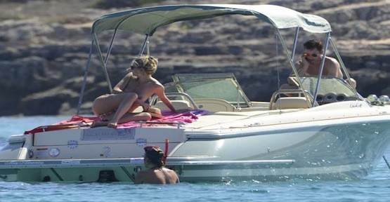 Blunt ve Wellesley, Formentera'da bir grup arkadaşlarıyla birlikte tekne gezintisi sırasında görüntülendi.