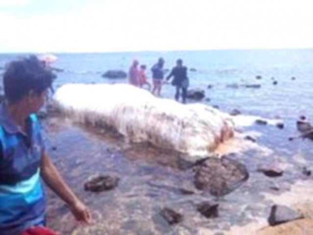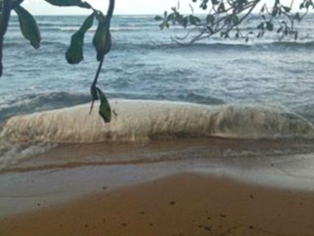 Sahilin şoke olan yerlileri, canavar benzeri yaratığı görmek ve fotoğraf çekmek için Dinagat Adaları'nın Cagdainao bölgesindeki sahile akın ettiler.