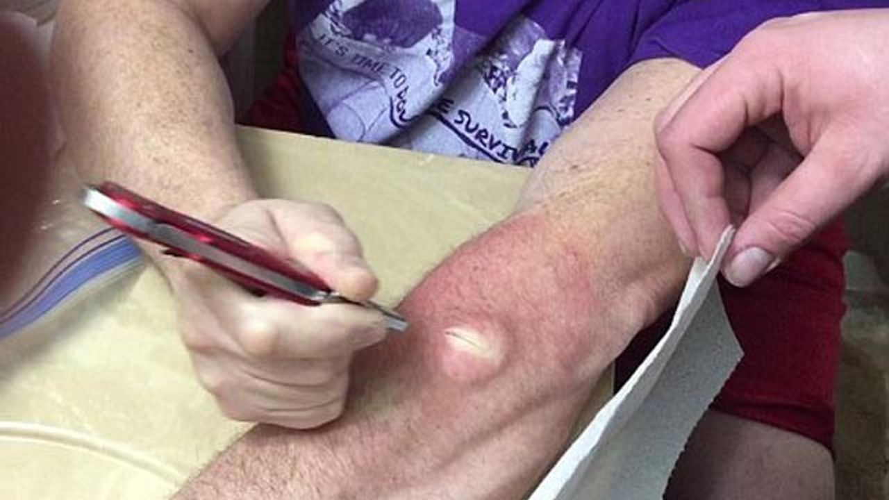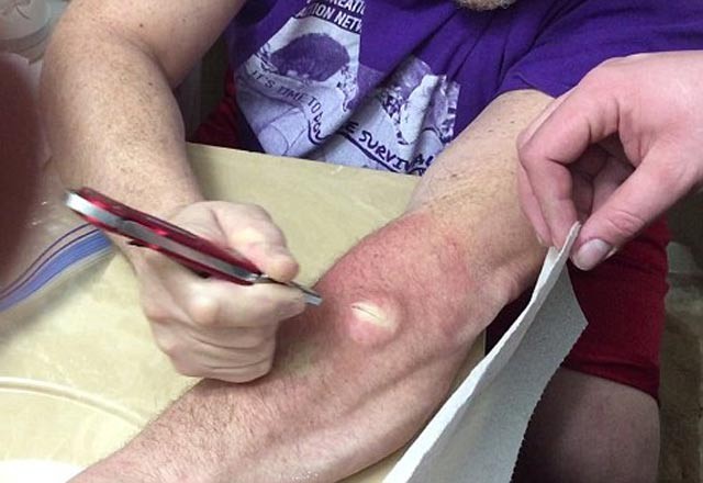 Kolunda kocaman bir kist olan adam doktora gitmek yerine evde kendi kendini tedavi etmeye karar verdi. Sizi uyaralım, adamın kolunun içinden çıkanları mideniz kaldırmayabilir...