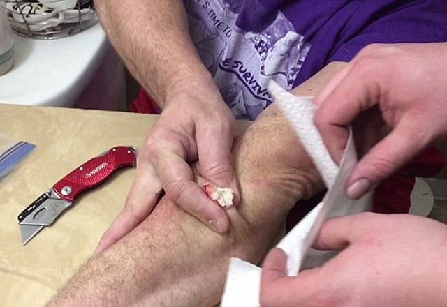 Daily Mail'de yayınlana habere göre, kimliği belirlenemeyen adam kolundaki kisti maket bıçağıyla kesti.