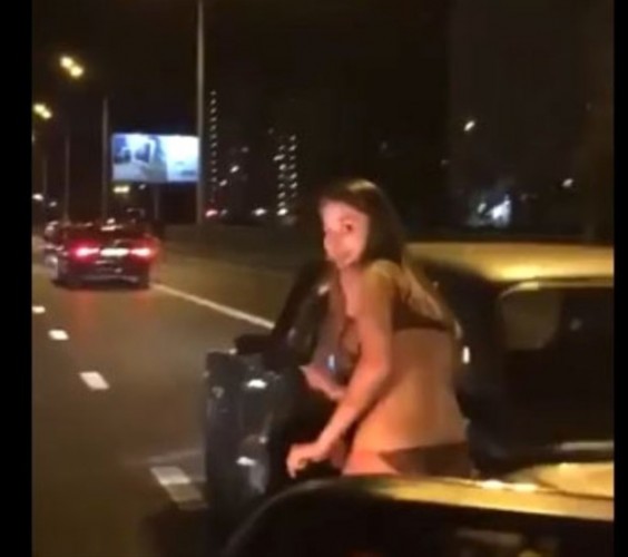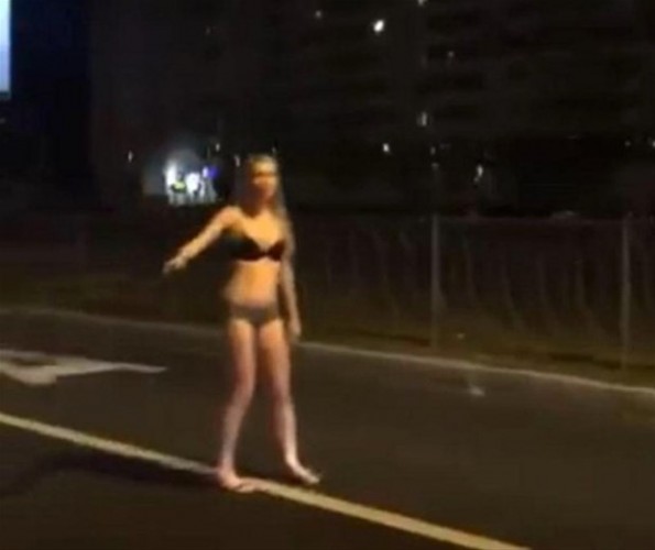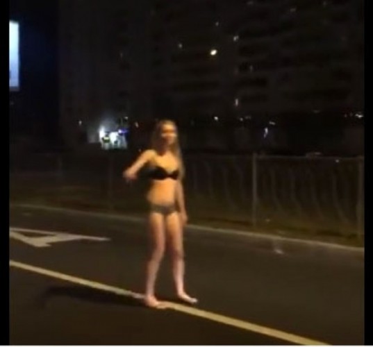 Yarı çıplak bir halde gece yol kesen kadınlar sürücüleri durduruyor.