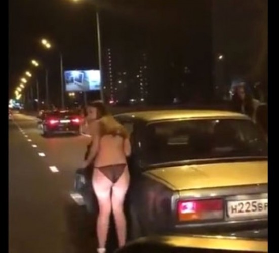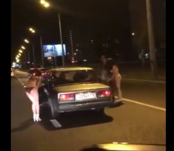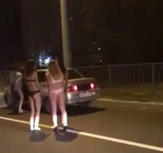 Rusya Federasyonu'da bağlı Tataristan'ın başkenti Kazan'da genç kadınlar gece otoyolda araçların önünü keserek para istiyor.