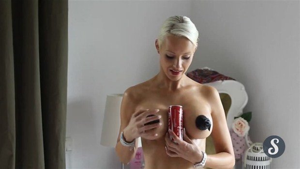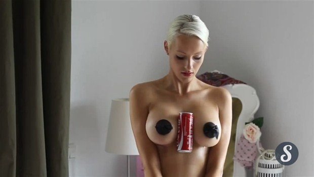 Diğerlerine göre çok daha cüretkar ve seksi olan bu meydan okumada, kadınlar göğüslerinin arasında kola kutusu ve kola şişesi tutmaya çalışıyor.