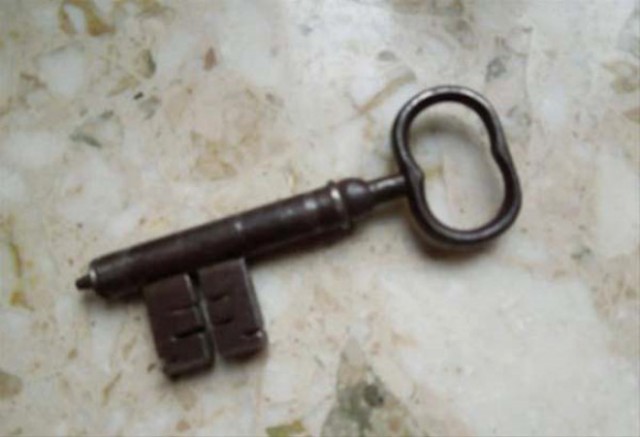 Ağzı sıkı sıkıya kapalı olan bu sandığı açma yollarını ararken, evde sandığı açabileceğini düşündüğü bir anahtar buldu.