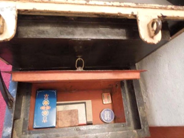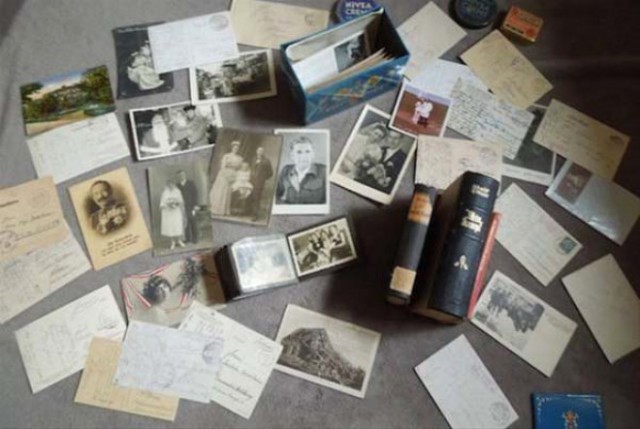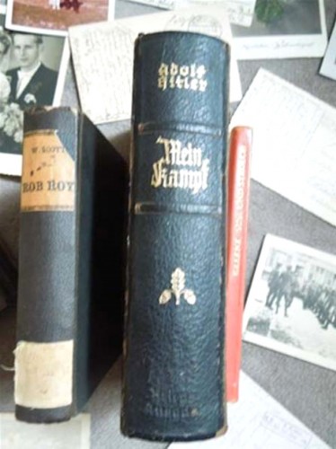 Sandıktan, yüzük, eski kitaplar, mektuplar, fotoğraflar ve Adolf Hitler'in bir kitabı çıktı.