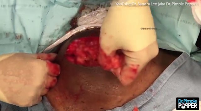 Çılgın bir hayran kitlesi oluşan Dr. Sivilce Patlatıcı, gerçek adıyla Dr. Sandra Lee bu kez bir adamın ensesindeki 400 gramlık, bowling topu ağırlığındaki yağ dokusu tümörünü keserek içini boşalttı.