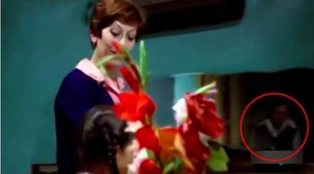 'Hababam Sınıfı Sınıfta Kaldı' filminde çocuklar okuldan atılmasın diye Hafize Ana'nın, Semra Hoca'yı ikna turları sırasında bir çekim hatası yaşanıyor. Sahne ilerledikçe kadraja giren bir set işçisi net bir şekilde görülüyor.