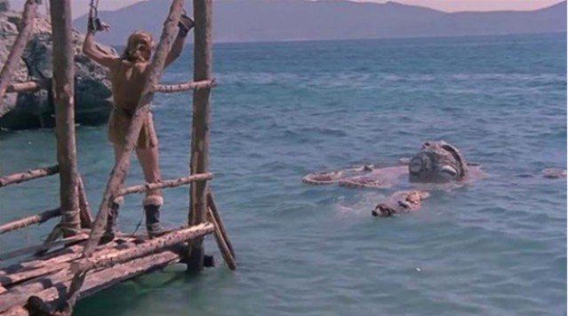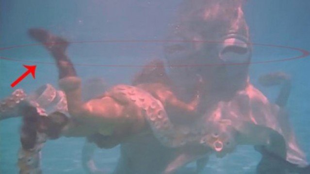 Kartal Tibet'in muhteşem peruğu ve süper minisiyle canlandırdığı 'Tarkan' karakterinin meşhur dev, canavar ahtapot sahnesini çoğunuz hatırlarsınız. İlk sahnesi deniz kenarında çekildikten sonra, Tarkan'ın su altında canavarla boğuşma sahnesi ise bir otel havuzunda çekilmiştir.